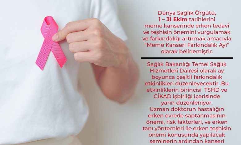 Sağlık Bakanlığı konuyla ilgili açıklamasında, Dünya Sağlık Örgütü’nün, 1 – 31 Ekim tarihlerini meme kanserinde erken tedavi ve teşhisin önemini vurgulamak, ayrıca farkındalığı artırmak amacıyla “Meme Kanseri Farkındalık Ayı” olarak belirlediğini belirtti.