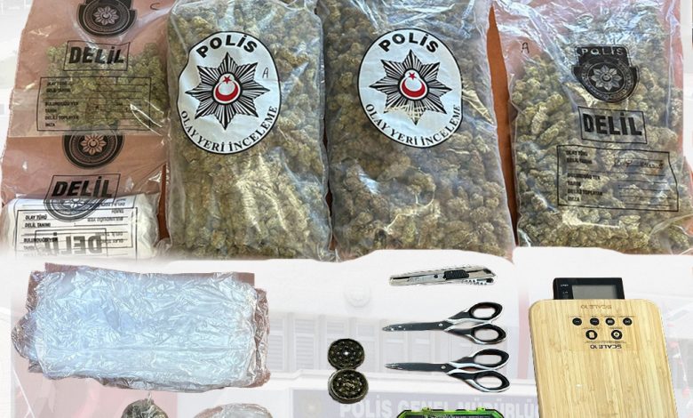 Polis Basın Subaylığı’ndan verilen bilgiye göre, Narkotik ve Kaçakçılığı Önleme Müdürlüğü ekipleri tarafından bugün düzenlenen “Tutsak Olma Operasyonu” kapsamında, E.K.’nin (E-27) ikametgahında yapılan aramada satışa hazır paketler halinde 2 kilo 700 gram hintkeneviri, 250 gram kokain ve 4 hassas terazi bulundu.